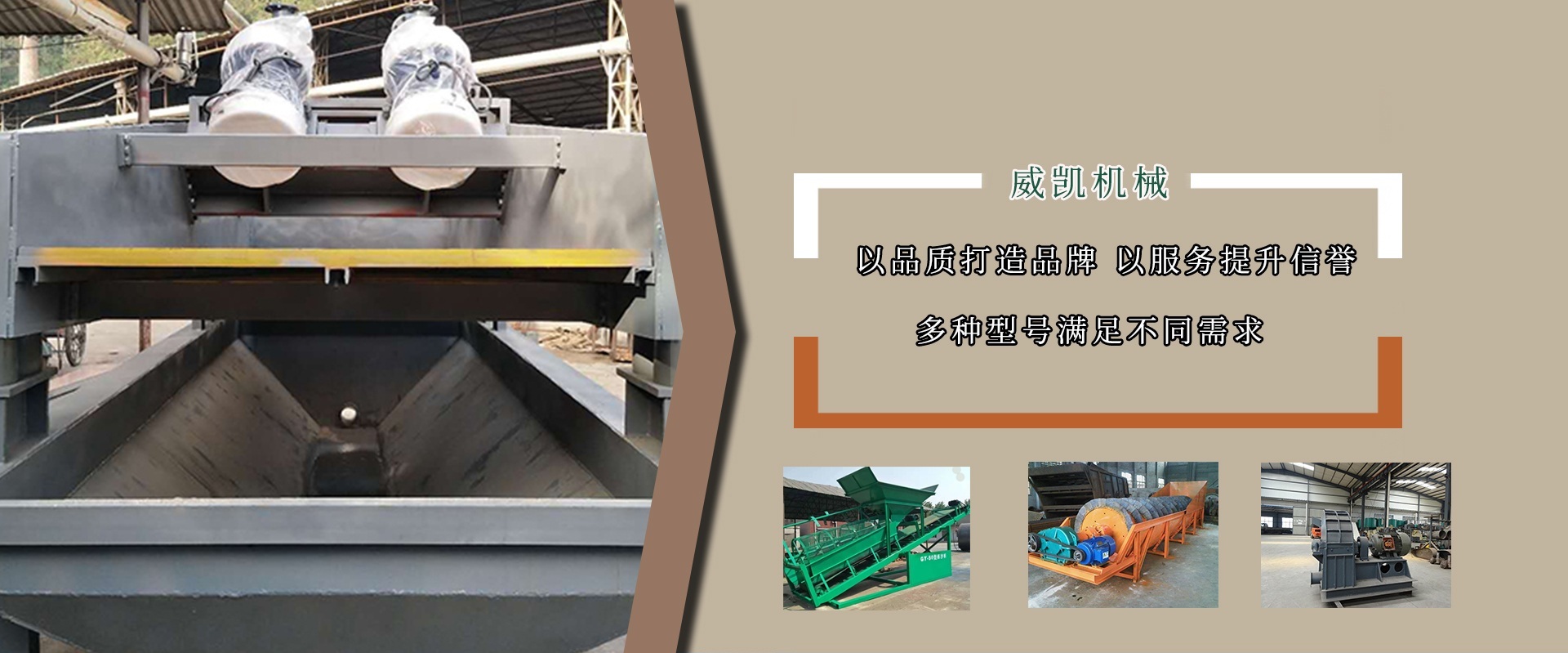 福建龍巖威凱機械制造有限公司是一家從事礦山破碎及篩分成套機械和機械設計—研發—生產—銷售—售后服務為一體的現代化技術企業,公司坐落于福建永定金鳳開發區。 威凱機械擁有實戰經驗豐厚的研發隊伍、精良的加工設備、熟練的操作人員、制造出節能環保的制砂洗砂設備和篩分脫水成套設備系列近30個品種,應用于化工、建設、煤炭、陶瓷、公路、鐵路、隧道、橋梁、水電工程、耐火材料等。行業秉承科學的管理體系和產品質量。 ?我公司長期堅持“科技與品質同行”的經營創新理念,秉承“精心設計、精良制作、精誠服務”的企業發展理念,以客戶滿意作為我們的目標,為客戶提供好的產品設備。我公司熱烈歡迎廣大客戶光臨指導、參觀考察、咨詢洽談。